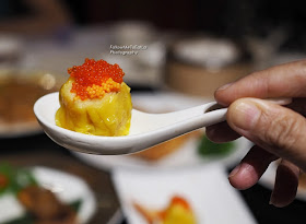 Best eaten while it's still hot, but be careful as the fish roe might fall over. Do it like how I eat it; hold the spoon and just take one big mouthful of the Siew Mai. don't attempt to bite it in half. Take small bites, savour every piece of the morsel of tender pork and prawn meat within the wanton skin. Once in a while, you'll bite into the savoury fish roe... so heavenly!